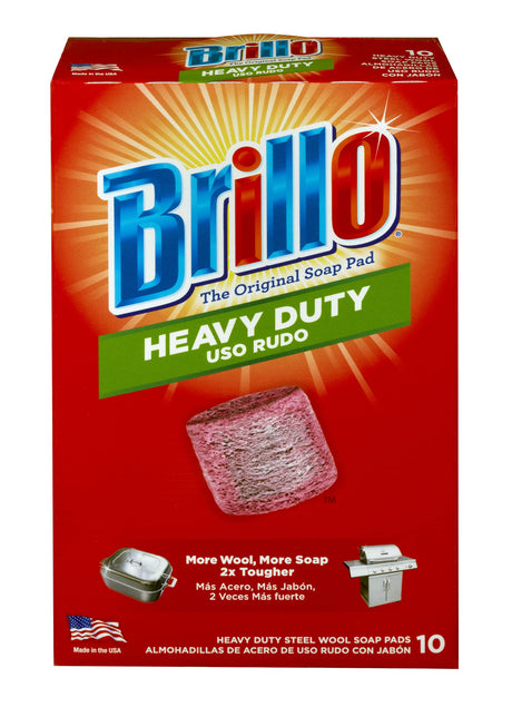 Brillo Heavy Duty Steel Wool Soap Pads, Original Red Scent (Heavy Duty, 10 Count (Pack of 1))