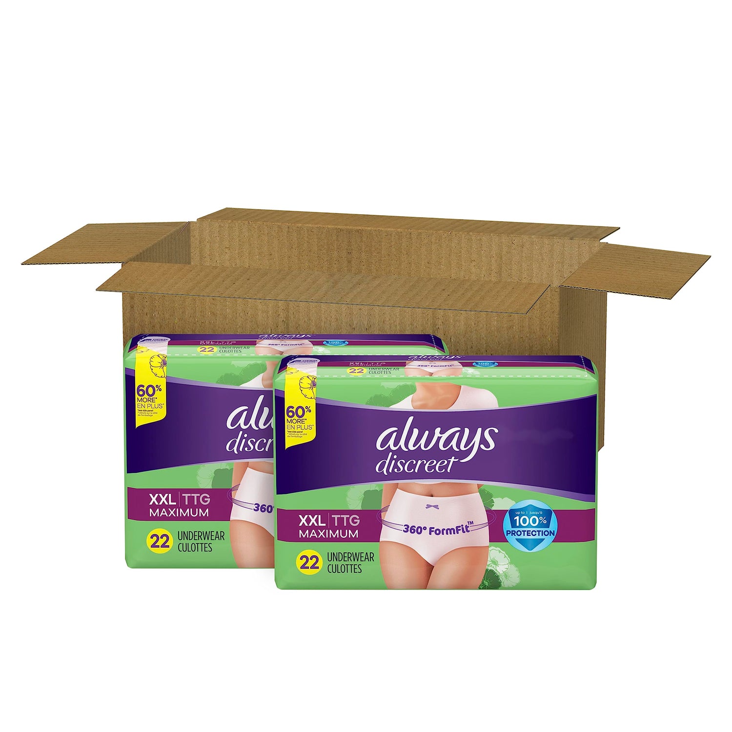 Always Discreet Adult Incontinence & Postpartum Underwear For Women, Size Xxl, Maximum Absorbency, Disposable, 22 x 2 Packs (44 Count total)