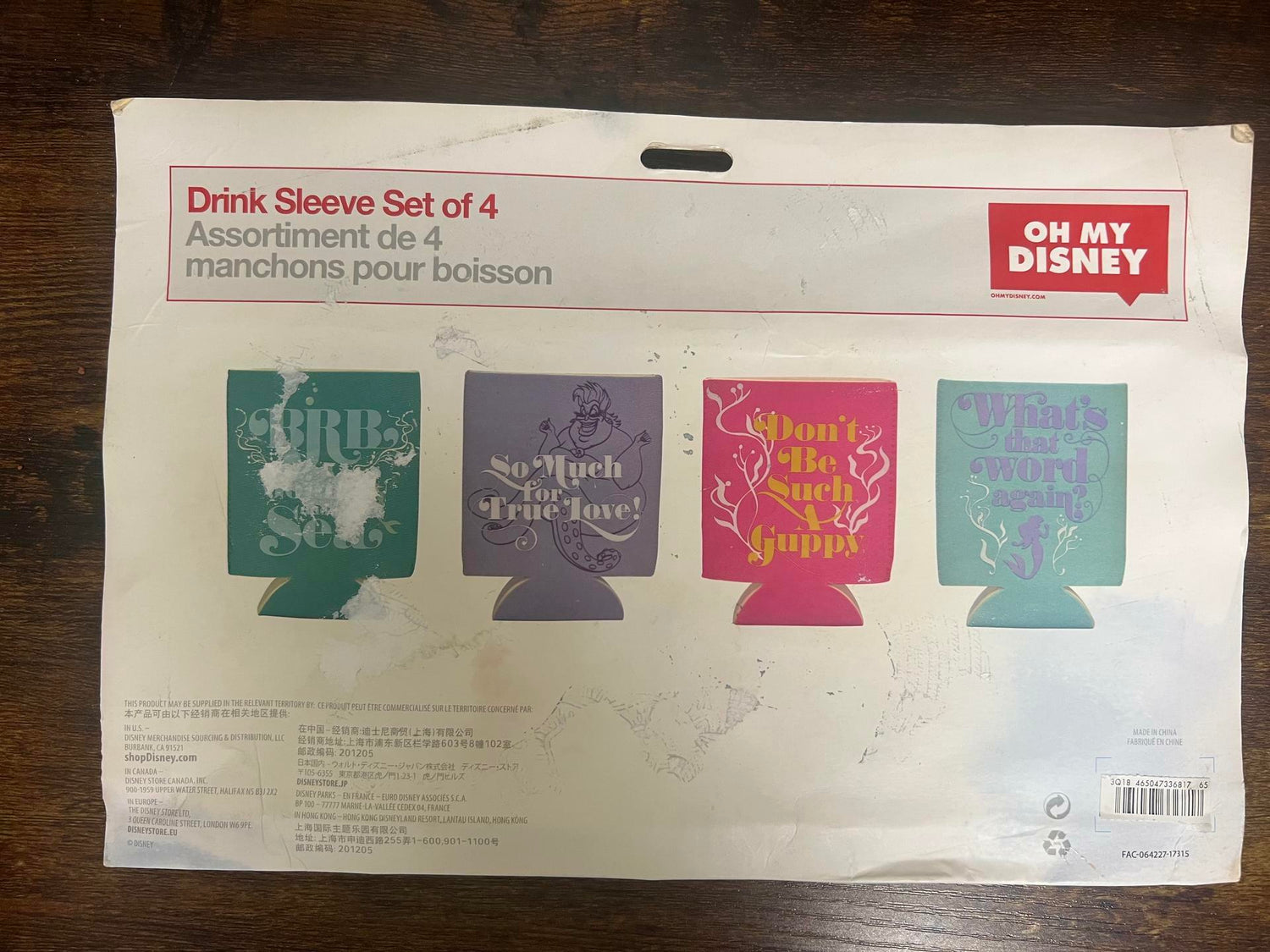 Disney Store The Little Mermaid Drink Holder Koozie 4 Pack. Same print on both sides.