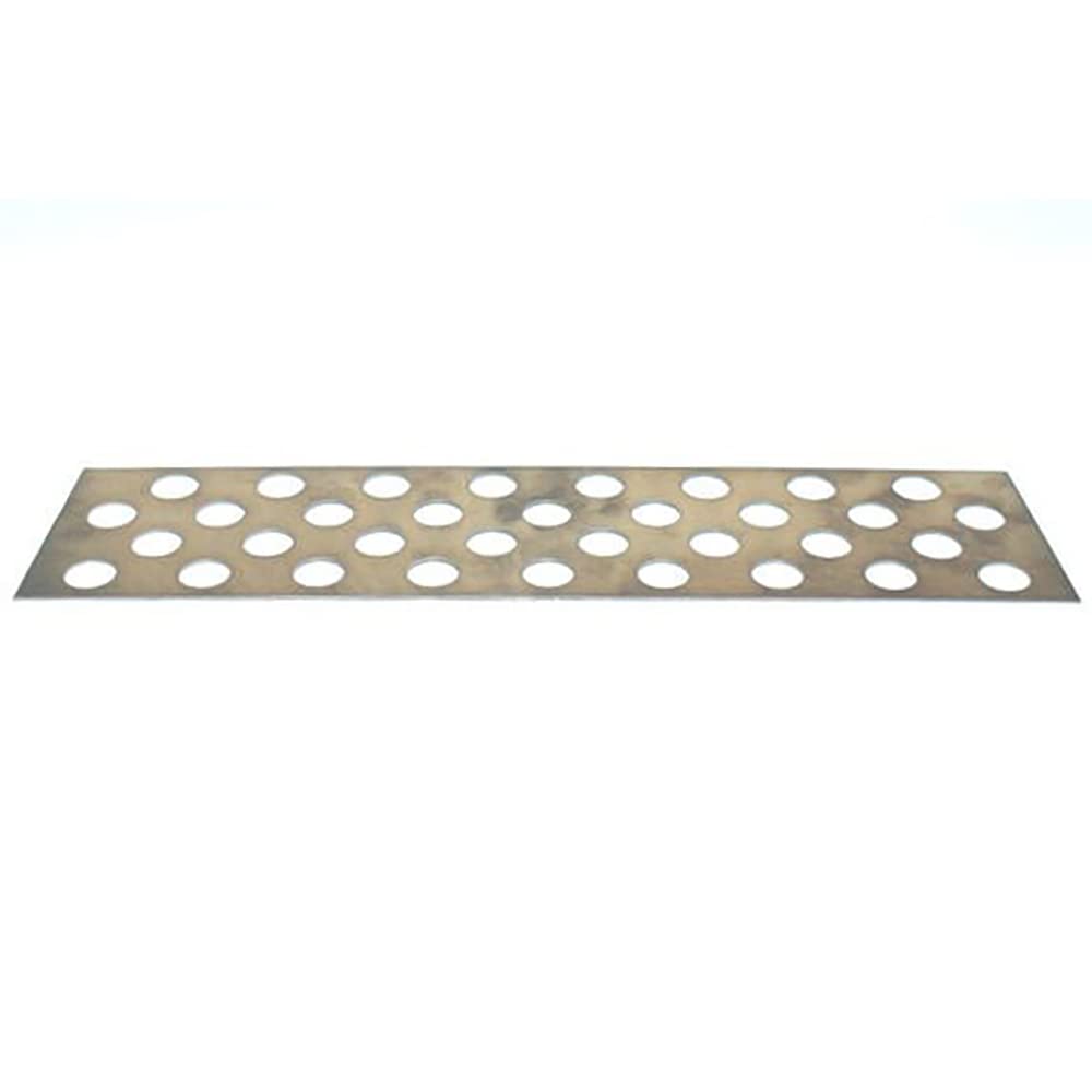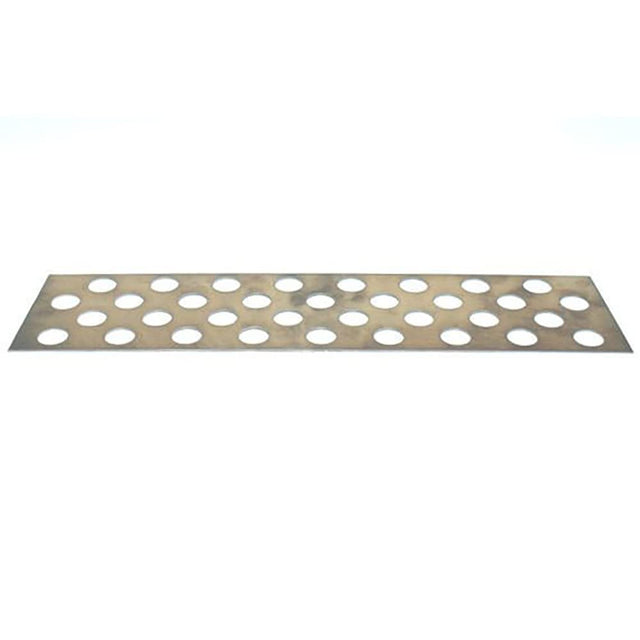 The floating shelf is a 1/16 inch thick, aluminum reinforcing unit, which is completely perforated with 1/2" holes. The shelf, when combined with surfacing tiles top and bottom, and the final grout, provides a structurally reinforced tiled shelf at the location the installer desires rather than a pre-set location dictated by the product manufacturer! The floating shelf unit is sized to fit within the grout joint of the vertical wall tile placed inside the Recess-It. This allows the installer to align the shelf with the existing layout of the wall tile without compromise, time consuming tile cuts or layout issues.
