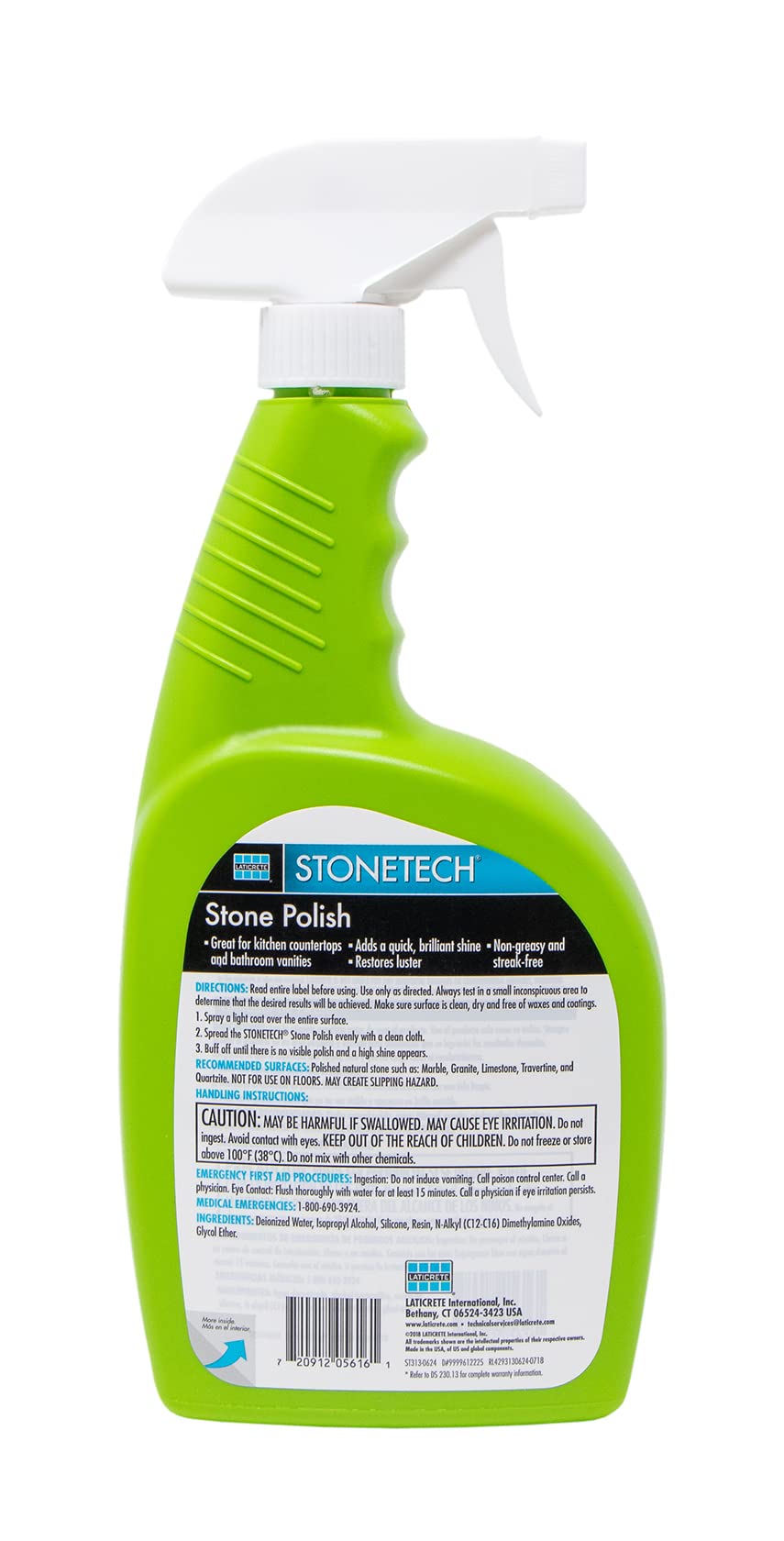 STONETECH Polish restores the luster of polished natural stone by adding a non-greasy, streak-free protective shine. This enhancing polish, shines, protects and restores to improve the overall surface appearance. Great for use on polished stone kitchen and bathroom countertops and vanities.
