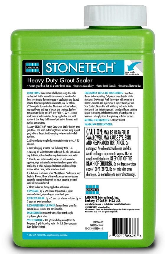 STONETECH Heavy Duty Grout Sealer is a water-based, penetrating sealer designed specifically for cement-based grouts and offers advanced protection against oil and water-based stains. A heavy duty sealer that blocks dirt and stains, keeping grout looking newer longer and ultimately improving clean-ability in interior and exterior applications. Better for you and the environment, STONETECH Heavy Duty Grout Sealer is also a safer alternative to solvent based sealers and comes with a 10 product guarantee.