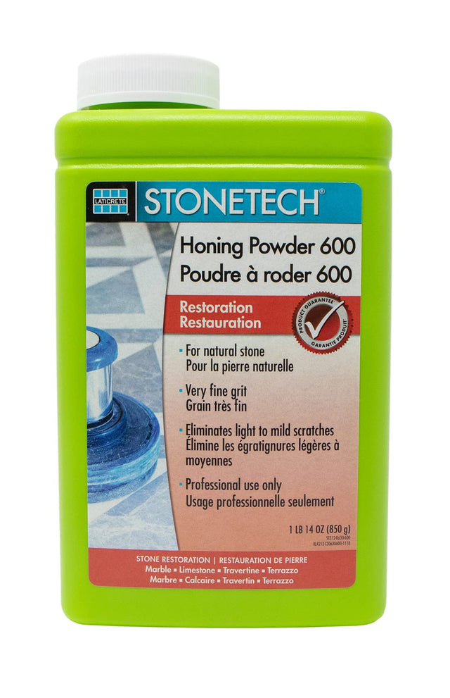 STONETECH Honing Powders are stone restoration powders that eliminate mild to deep scratches and create even honed, flat finishes. These powders are available in extra fine to coarse grits (180, 280, 400, 600, and 800). These non-acidic powders are designed for professional use on natural stone and terrazzo surfaces. STONETECH honing powders prepare the surface for polishing with STONETECH Polishing Powder.